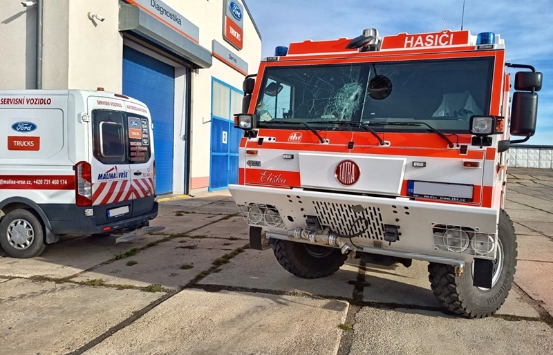 Vyměnili jsme prasklé čelní sklo, opravili poškozené pneumatiky a došlo i ke kompletní výměně olejů, aby byla zaručena dlouhodobá spolehlivost i při náročném provozu.