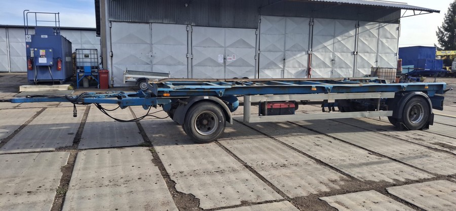 Kontejnerový vlek Meiller. Registrační značka H031207. VIN W09G02218V0H30095. Datum výroby - 01.01.1997. Druh stroje - Nákladní přívěs R3B. Tovární značka - Meiller. Provozní hmotnost - 4 tuny. Největší technicky přípustná hmotnost - 18 tun. Spojovací zařízení - 50 mm. Ložná plocha délka - 7 m. Šíře - 2,5 m. Prodejní cena 95 000 Kč (bez DPH).